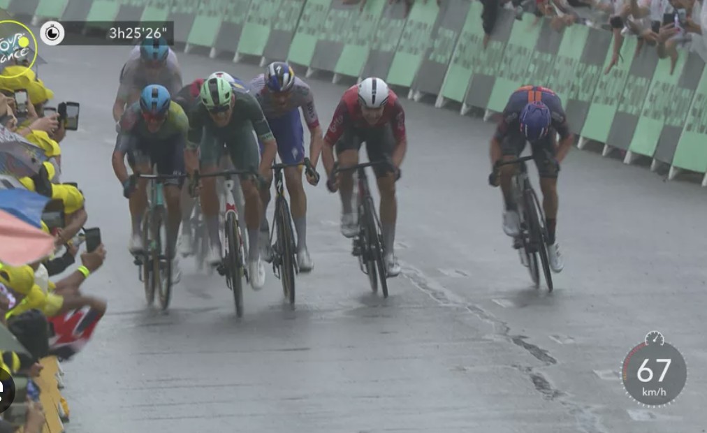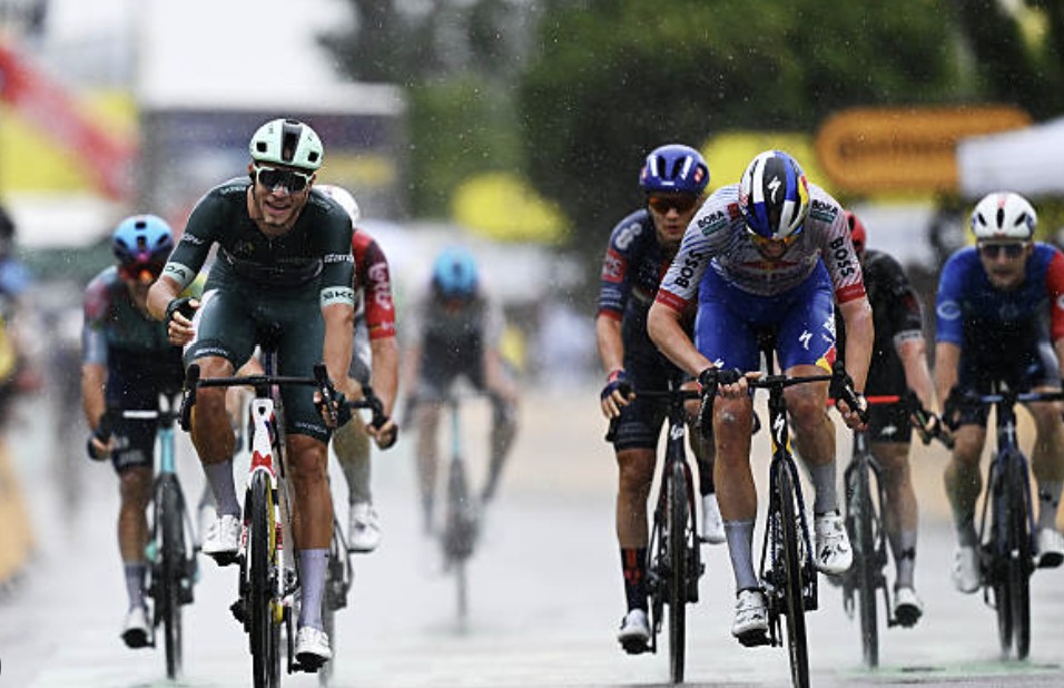 Biniam Girmay (Intermarche) Voor hem is de begeerde groene trui. De groep vluchters is vandaag zo groot dat alle punten al vergeven zijn waardoor zijn rivaal Jasper Philipsen achter het net vist. Zijn drie rit overwinningen maken de Tour voor de Alpecin renner meer dan geslaagd.