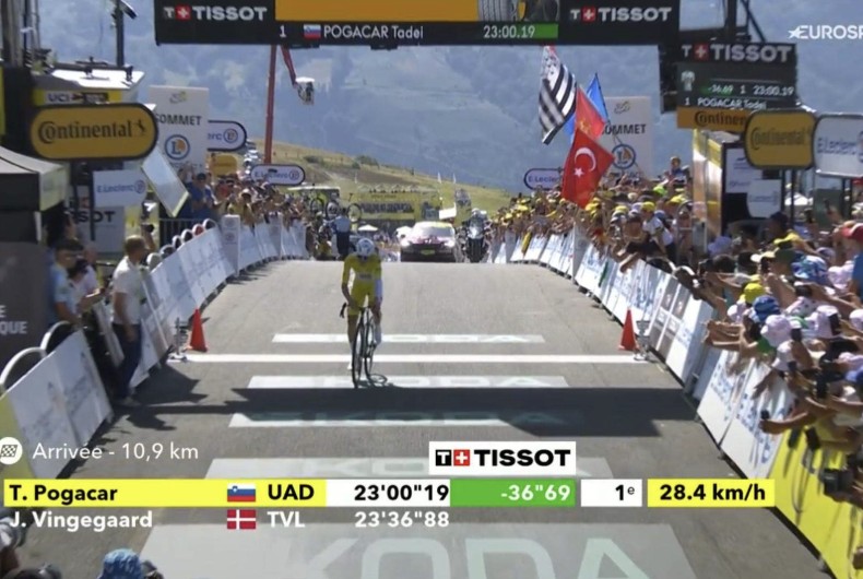 Natuurlijk moet de beste renner winnen en in deze Tour is er maar onvoorwaardelijk de beste en dat is Pogacar! Die eigenzinnige de man die alles kan, die zoveel lol in het wielrennen uitstraalt en waarbij je nooit het gevoel krijgt dat hij lijdt en moet afzien. ’ Ja ik ken deze bergen goed, heb er veel getraind en de benen waren goed.